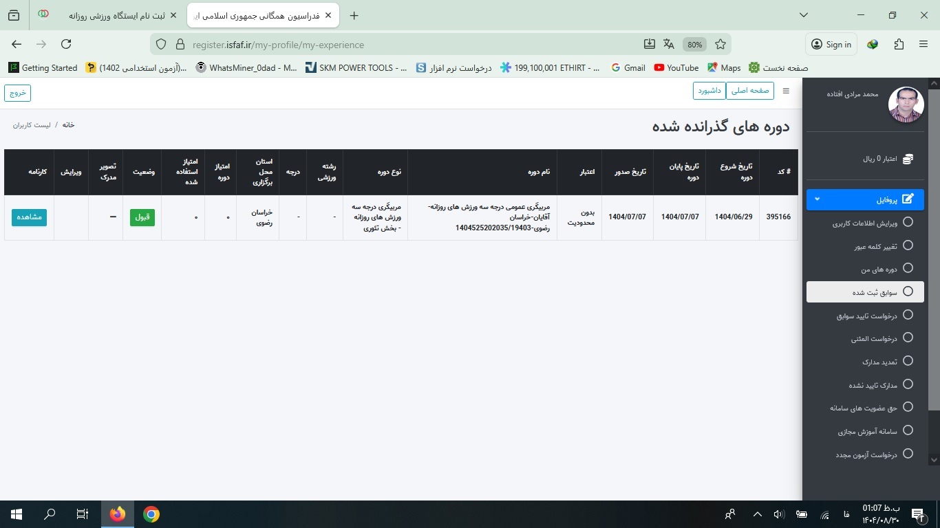 ثبتنام ورزشکار