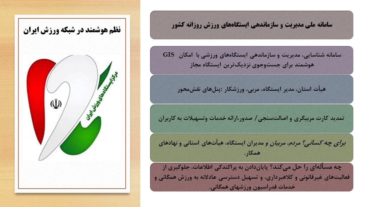 فراهمکردن دسترسی سریع و دقیق مردم به ایستگاههای ورزشی فعال در شهرها و استانها
